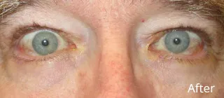 Ectropion is an outwardly turned or sagging lower lid. As the lid sags away, the eye is exposed and causes symptoms of dryness and excessive tearing. Common causes of ectropion include age-related tendon laxity, trauma, scarring, or facial nerve paralysis associated with Bell’s Palsy. Treatment typically begins with lubrication drops or ointments, which may give temporary relief from the irritation. However, surgical treatment is usually the only long-term solution.